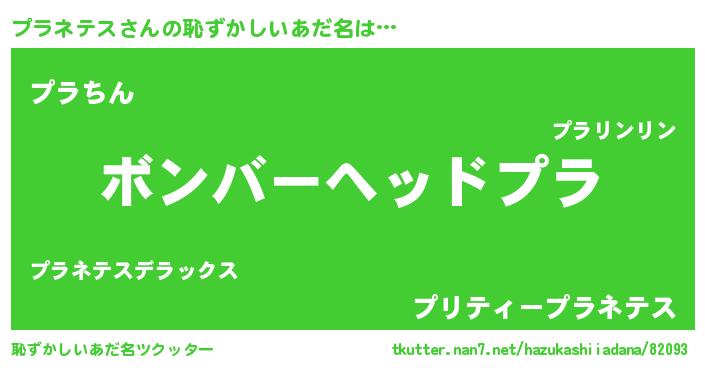| ヘコむあだ名 | 『プラネテス(爆)』『プラにゅー』 |