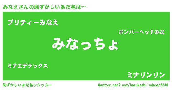 | 意味不明あだ名 | 『みなえフォーエバー』『ペロリンみなえ』 |