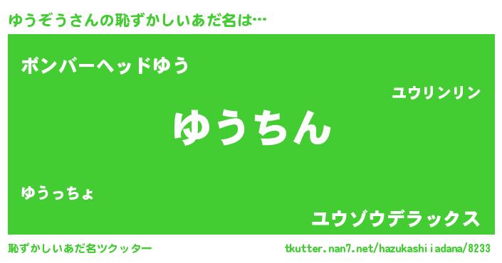 | 意味不明あだ名 | 『永久保存ゆうぞう』『自称ゆうぞう』 |