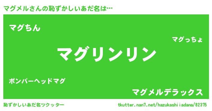 | 意味不明あだ名 | 『なめこ科マグメル属』『自称マグメル』 |