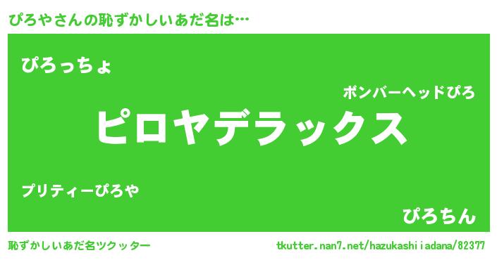 | ヘコむあだ名 | 『酢こんぶ』『ぴろや(笑)』『ぴろお』 |
