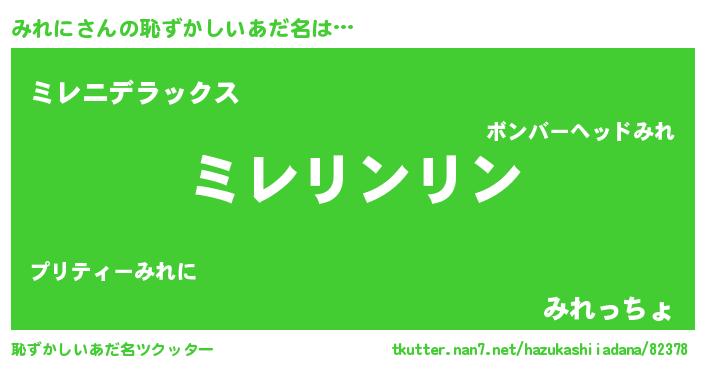 | 女子向けラノベタイトル風あだ名 | 『みれにの卵を拾いまして』『闇のみれに』 |