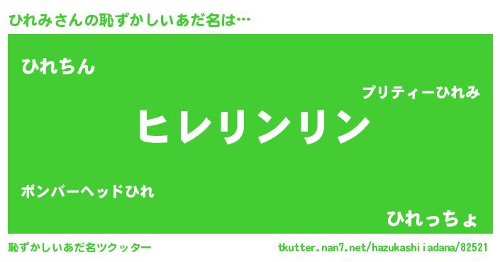 | 女子向けラノベタイトル風あだ名 | 『ひれみは平凡を望む』 |