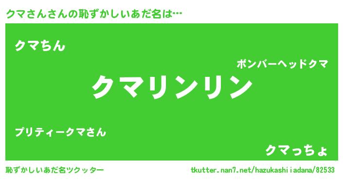 | ポケモン風あだ名 | 『ヒクマサン』『クマゴンZ』 |