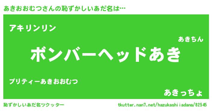 | 男性向けラノベタイトル風あだ名 | 『ノーゲーム・ノーアキオオムツ』 |