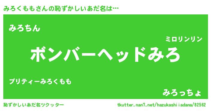 | ヘコむあだ名 | 『みろくもも(笑)』『豆乳』 |