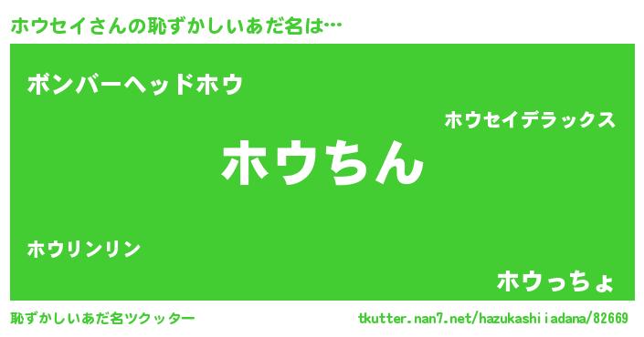 | 意味不明あだ名 | 『永久保存ホウセイ』『自称ホウセイ』 |