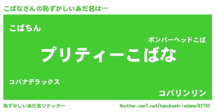 | 意味不明あだ名 | 『ペロリンこばな』『永久保存こばな』 |