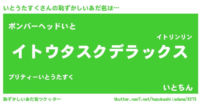 | 男性向けラノベタイトル風あだ名 | 『Re:いとうたすくから始める異世界生活』 |