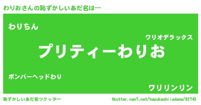 | 意味不明あだ名 | 『ペロリンわりお』『永久保存わりお』 |
