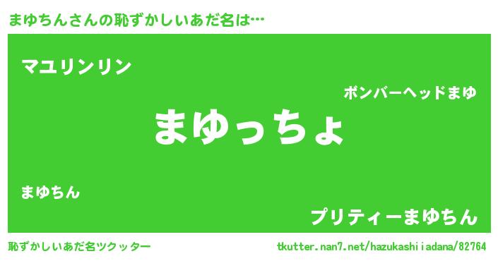 | ヘコむあだ名 | 『豆乳』『まゆお』『まゆにー』 |