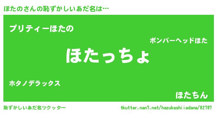 | 意味不明あだ名 | 『ほたのフォーエバー』『ペロリンほたの』 |