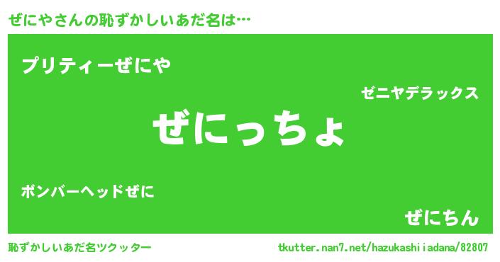 | 意味不明あだ名 | 『ぜにやフォーエバー』『ペロリンぜにや』 |