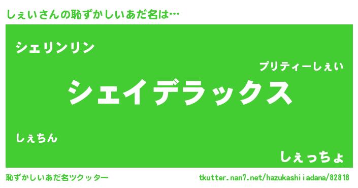 | 意味不明あだ名 | 『自称しぇい』『とにかく怪しいしぇい』 |