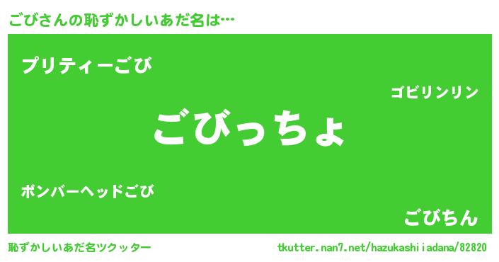 | 意味不明あだ名 | 『住所不定無職ごび(91歳)』『ペロリンごび』 |