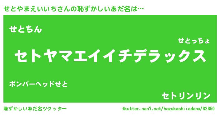| 意味不明あだ名 | 『自称せとやまえいいち』 |
