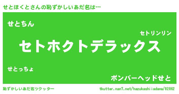 | 意味不明あだ名 | 『自称せとほくと』『永久保存せとほくと』 |