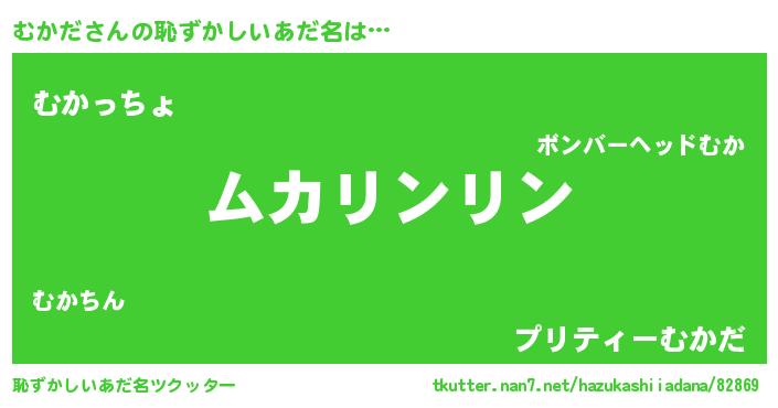 | ヘコむあだ名 | 『むかを』『なまこ酢』『むかにー』 |