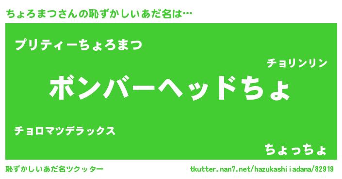 | 意味不明あだ名 | 『眠気覚ましガムちょろまつ味』 |