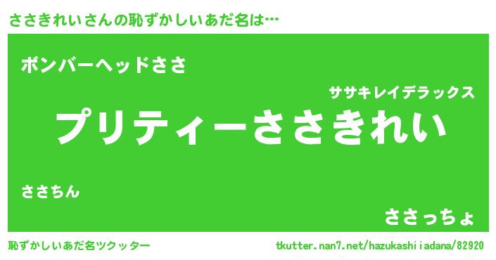 | 伝説のあだ名 | 『伝説のスナイパーささきれい』 |