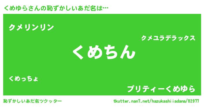 | ヘコむあだ名 | 『くめゆら(震え声)』『くめっちょ』 |