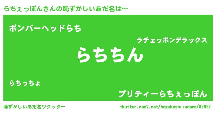 | ヘコむあだ名 | 『らちぇっぽん(笑)』『らちにー』 |