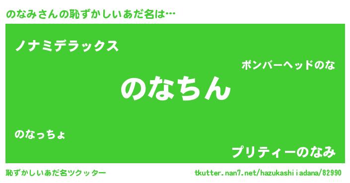 | ヘコむあだ名 | 『のなみ(苦笑)』『のなもー』『豆乳』 |