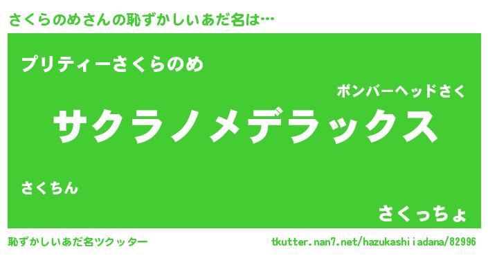 | 女子向けラノベタイトル風あだ名 | 『さくらのめなんてお断りですっ。』 |