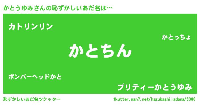 | ヘコむあだ名 | 『かとうゆみ(爆)』『かとっちょ』 |