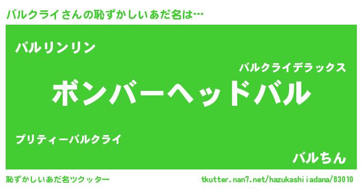 | ヘコむあだ名 | 『バル太郎』『バルクライ(苦笑)』 |