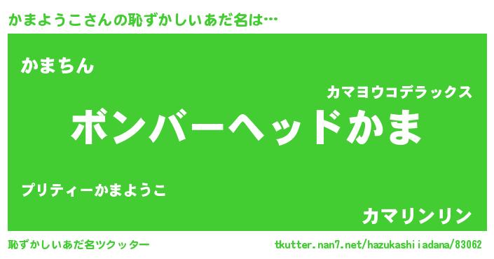 | ヒーロー風カッコイイあだ名 | 『慈愛の使者かまようこ』『幻影騎士カマ』 |