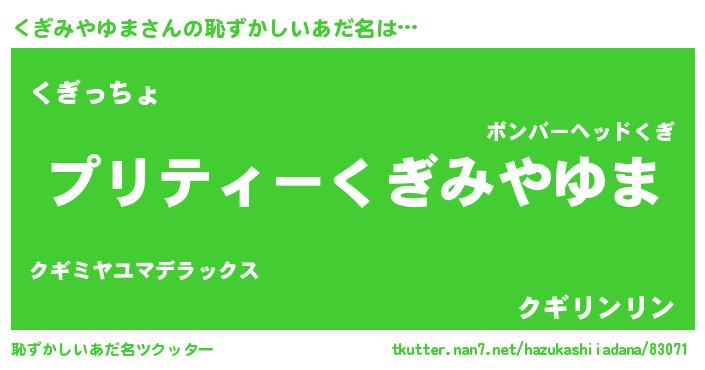 | 意味不明あだ名 | 『住所不定無職くぎみやゆま(4歳)』 |