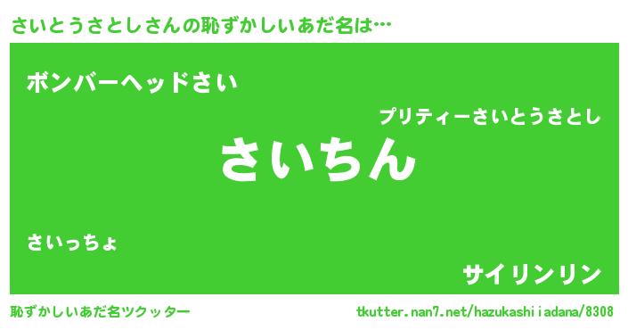 | 意味不明あだ名 | 『永久保存さいとうさとし』 |