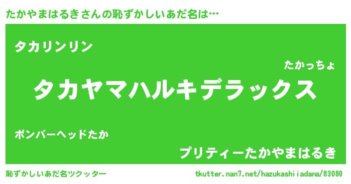 | 肩書あだ名 | 『たかやまはるき閣下』 |