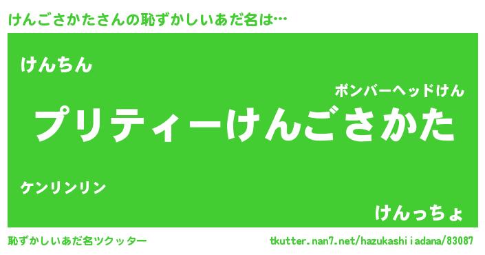 | ヘコむあだ名 | 『けんもー』『けんごさかた(爆)』 |