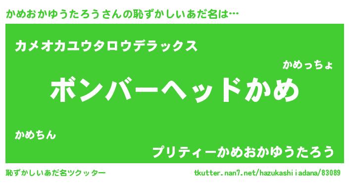 | 男性向けラノベタイトル風あだ名 | 『おまえをオタクにしてやるから、俺をかめおかゆうたろうにしてくれ! 』 |