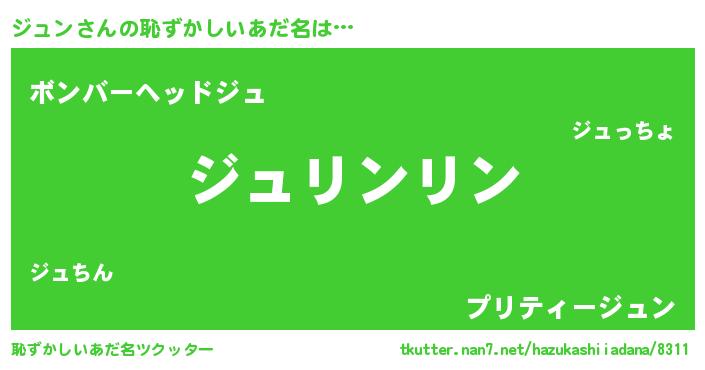 | 欧米人風あだ名 | 『ウサインジュン』『アンジェラ・ジュン』 |