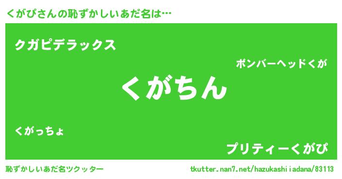 | 男性向けラノベタイトル風あだ名 | 『くがぴという概念が存在しない退屈な世界 』 |