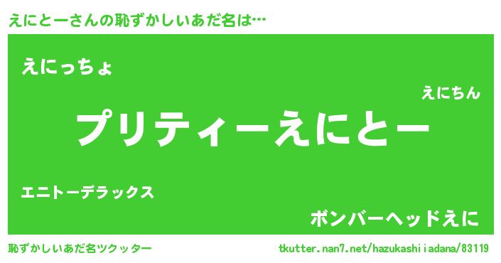 | 意味不明あだ名 | 『ペロリンえにとー』『永久保存えにとー』 |