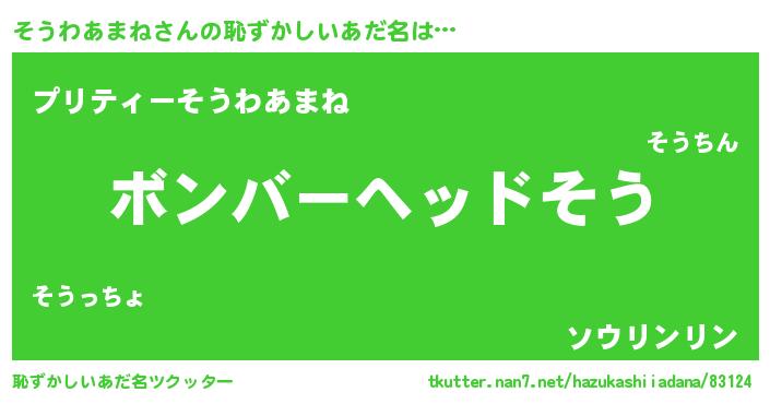 | ヘコむあだ名 | 『そうにゅー』『そうぷりん』 |