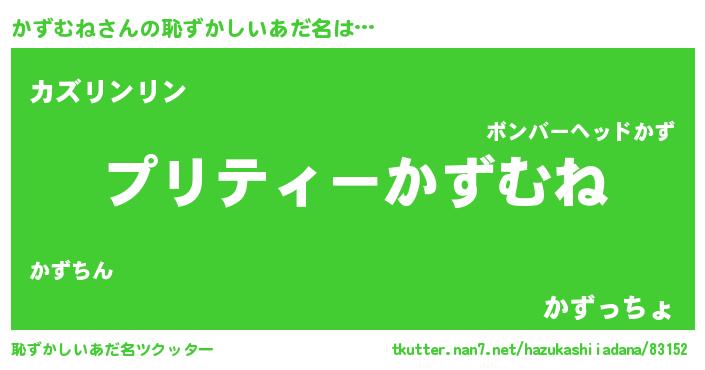 | ヒーロー風カッコイイあだ名 | 『スーパーカズムネ』『黄金騎士カズ』 |