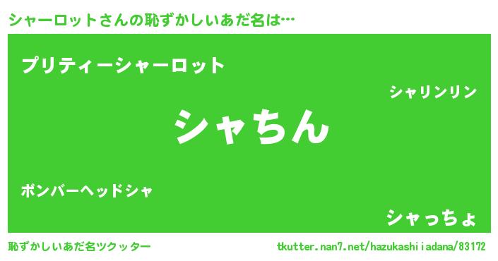 | ヘコむあだ名 | 『シャーロット(震え声)』『シャにゅー』 |