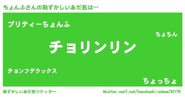 | 男性向けラノベタイトル風あだ名 | 『この素晴らしい世界にちょんふを!』 |