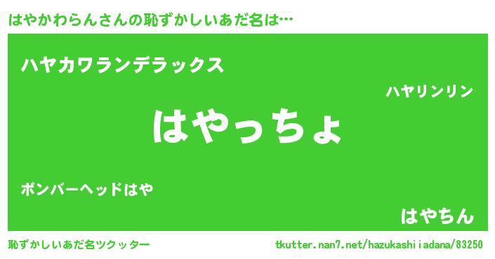 | ポケモン風あだ名 | 『ハヤゴンZ』『ハヤカダネ』 |