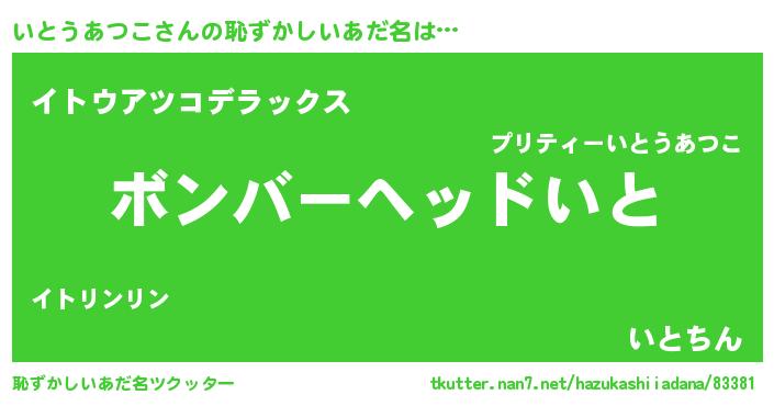 | ヘコむあだ名 | 『いとうあつこ(苦笑)』『いとふぇ~』 |