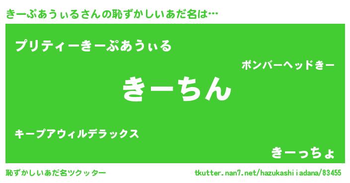 | 男性向けラノベタイトル風あだ名 | 『きーぷあうぃるという概念が存在しない退屈な世界 』 |