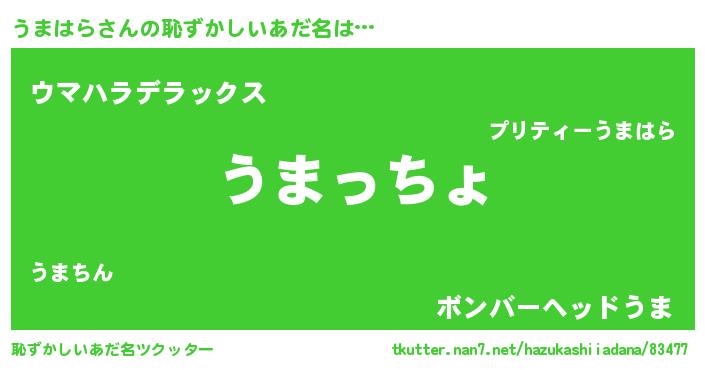 | 意味不明あだ名 | 『うまはらフォーエバー』『自称うまはら』 |