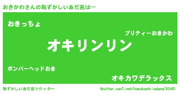 | 意味不明あだ名 | 『とにかく怪しいおきかわ』 |