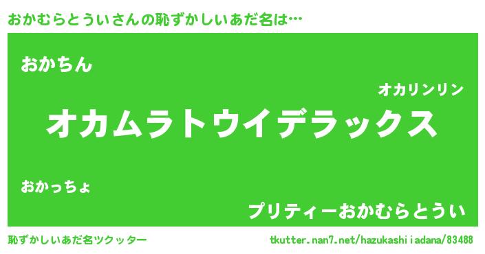 | 意味不明あだ名 | 『自称おかむらとうい』 |