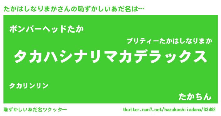 | 欧米人風あだ名 | 『ケンブリッジたかはしなりまか』 |